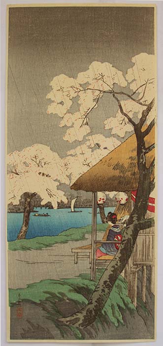 Cherry Blossoms at Sumida Bank in rain