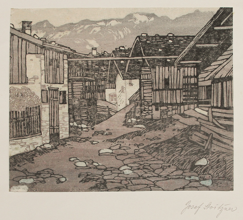 Josef Stoitzner. „Dorfgasse in ob. Pinzgau“. Orig. Holzschnitt. Handdruck.