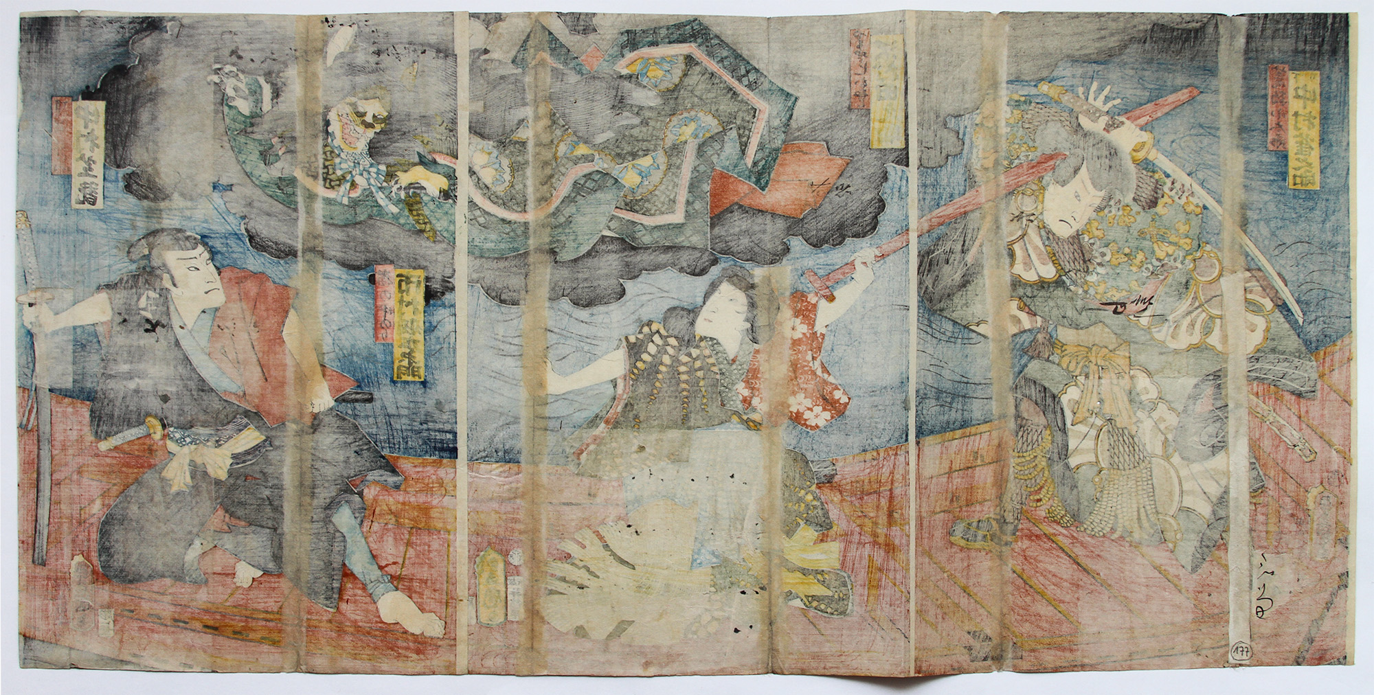 Original Japanese Woodblock Print, Size Oban Triptych (36 x 74 cm)