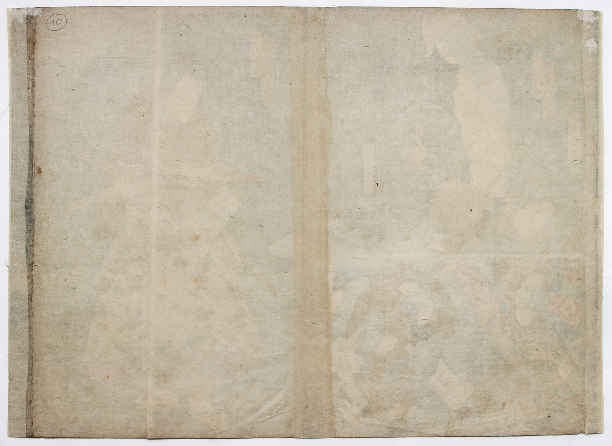 Condition: excellent impression, colors slightly faded, thin backing, sheets glued together at margins, rubbing along left margin