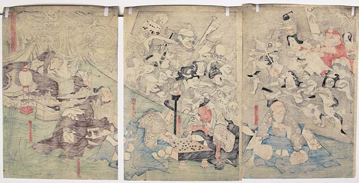 Original Japanese Woodblock Print, Vertical ôban triptych (each sheet about 37 x 25,5 cm)