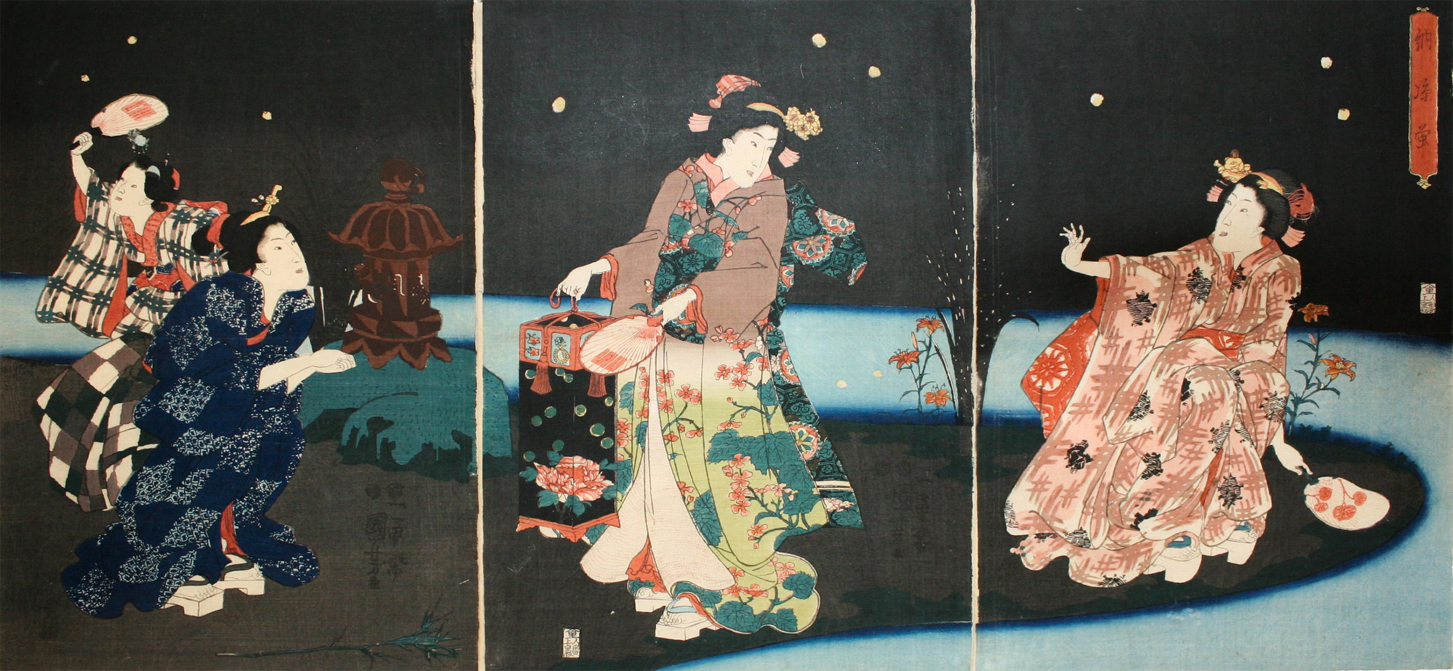 Original Japanese woodblock print, Ôban Trypych