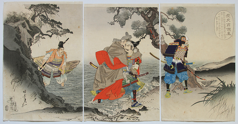 Samurai Nawa Nagashige helping the deposed Emperor Go-Daigo return from his exile on Oki Island