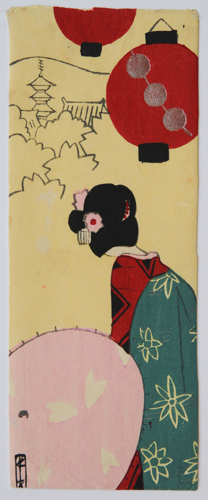 Original Japanese Woodblock Print, Size: 15,1x6 cm