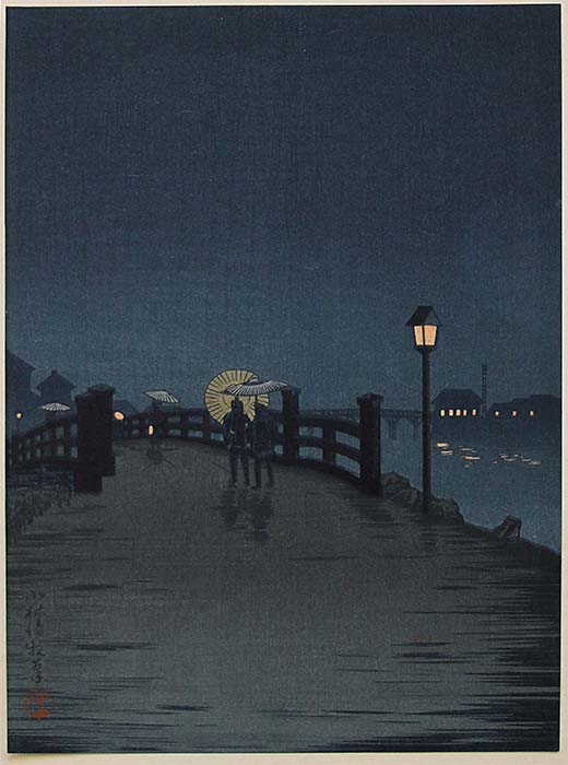 Crossing a Bridge at a Rainy Night