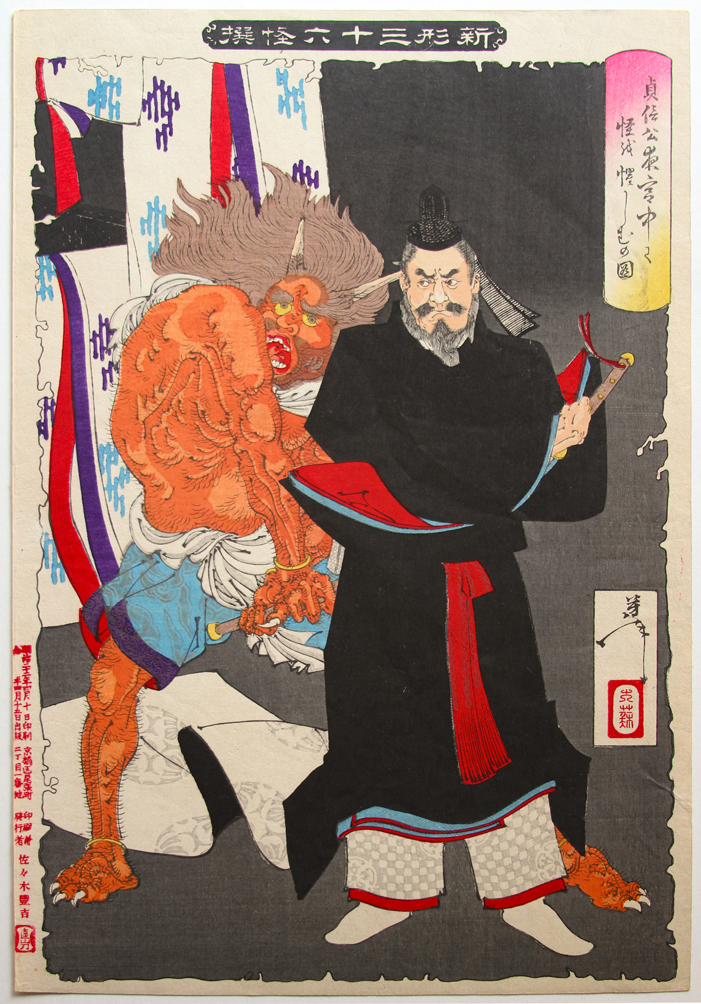Lord Sadanobu Threatening a Demon in the Palace at Night