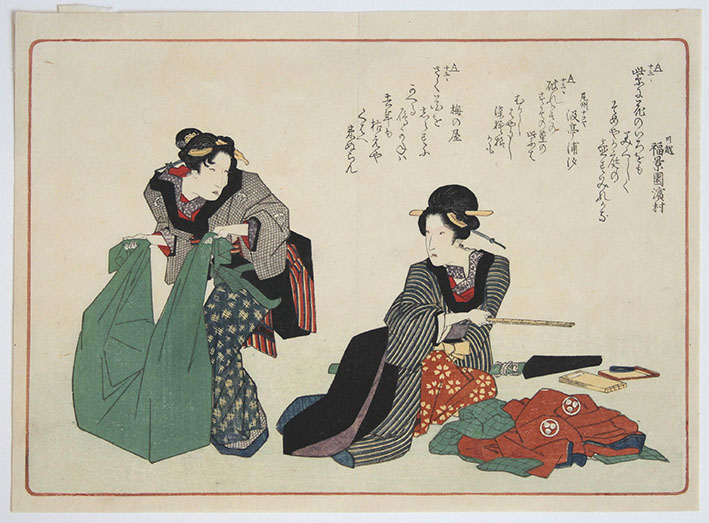 The series consists of twenty-six unnumbered sheets with pictures of women and examples of kyoka verse.